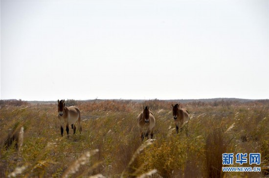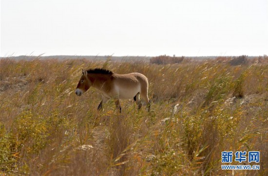 這是10月16日在敦煌西湖國家級自然保護(hù)區(qū)拍攝的普氏野馬。 新華社記者 胡偉杰 攝