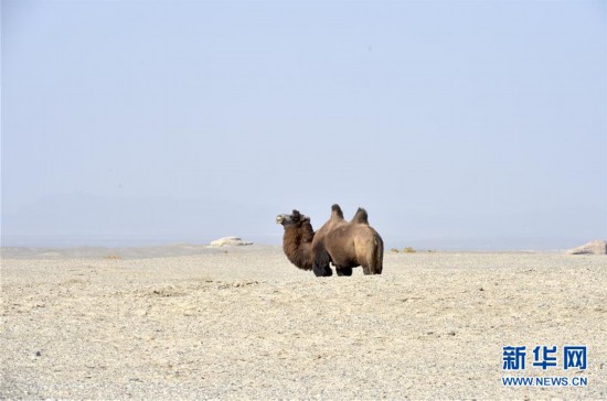 這是10月16日在敦煌西湖國家級自然保護(hù)區(qū)拍攝的野駱駝。 新華社記者 李笑 攝