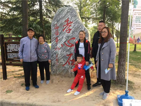 在節(jié)日的氛圍里,游客熱情高漲,爭先恐后地與“孝心石”合影留念,以此表達(dá)自己對(duì)父母的親切祝福。