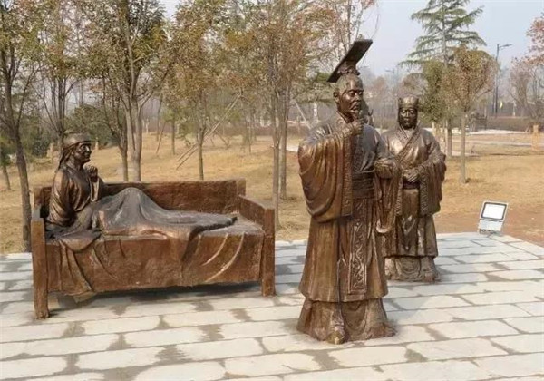 漢文帝劉恒,漢高祖第三子,為薄太后所生。高后八年(前180)即帝位。他以仁孝之名,聞?dòng)谔煜拢谭钅赣H從不懈怠。母親臥病三年,他常常目不交睫,衣不解帶;母親所服的湯藥,他親口嘗過后才放心讓母親服用。他在位24年,重德治,興禮儀,注意發(fā)展農(nóng)業(yè),使西漢社會(huì)穩(wěn)定,人丁興旺,經(jīng)濟(jì)得到恢復(fù)和發(fā)展,他與漢景帝的統(tǒng)治時(shí)期被譽(yù)為“文景之治”。