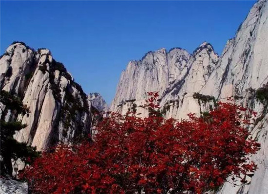 華山的紅葉浪漫而熾烈,她使蕭瑟的群山充滿了生機和活力。那些五角楓樹和黃櫨葉子在薄暮中分外地紅著,在陽光中到處閃動著鮮紅的翅膀,想要與彩霞或夕陽一起飛翔。人們猜想,那一定是調(diào)皮的小廝盜了弄玉的胭脂潑在了山坡上,要不然,華山的紅葉紅葉何以會漫山遍野,何以會如此熾紅而且多情。