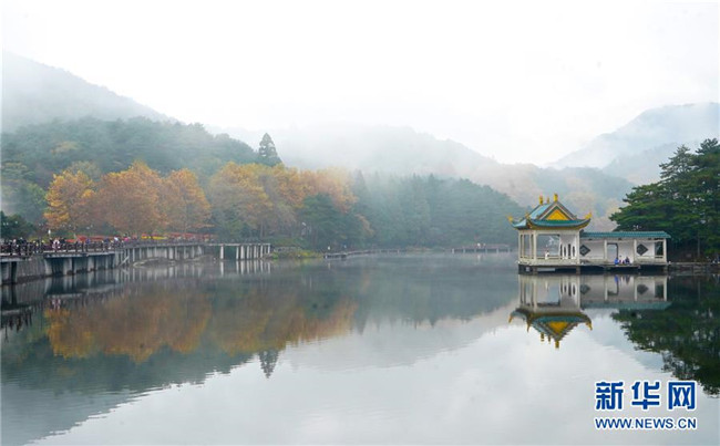 當日,位于江西省九江市廬山風景區(qū)內(nèi)的如琴湖云霧繚繞,層林盡染,吸引眾多游客前來觀賞游玩。