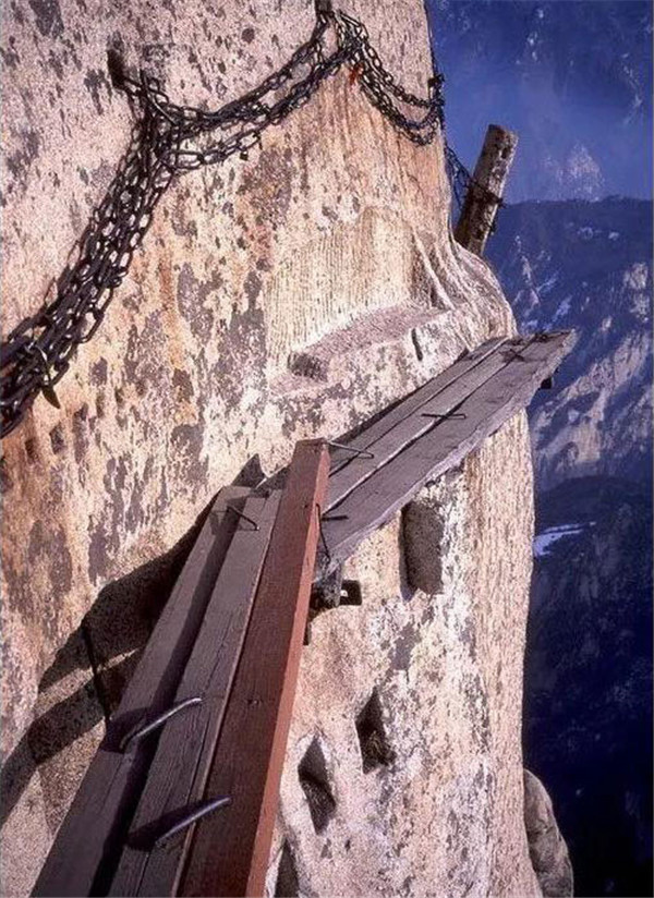 史學(xué)家考證:記載華山最早的書(shū)籍是《尚書(shū)·禹貢篇》,《史記·封禪書(shū)》載有黃帝、堯、舜巡游華山事。人們最早登臨華山主峰的記載見(jiàn)于《韓非子·外儲(chǔ)說(shuō)左上》。酈道元的《水經(jīng)注》顯示,今日登山路已現(xiàn)雛形,至唐代已開(kāi)辟出從華山峪經(jīng)青柯坪、云臺(tái)峰登頂?shù)穆肪€,即“自古華山一條路”,距今已有一千多年了。