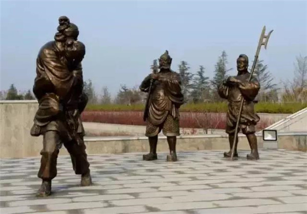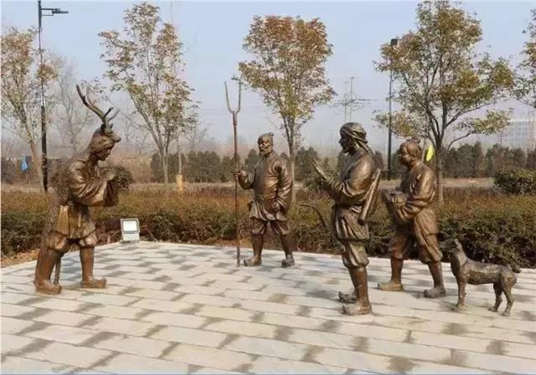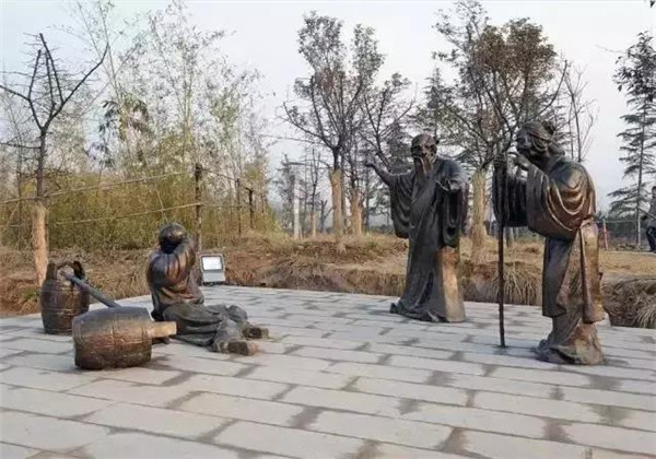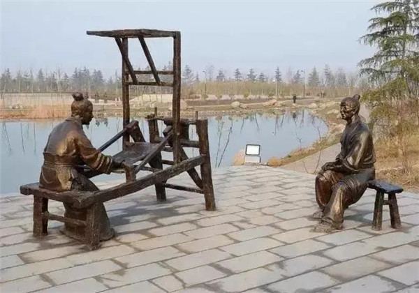 董永,相傳為東漢時期千乘人,年少喪母,因避兵亂遷居安陸。其后父親亡故,董永賣身至一富家為奴,換取喪葬費(fèi)用。上工路上,于槐蔭下遇一女子,自言無家可歸,二人結(jié)為夫婦。女子以一月時間織成三百匹錦緞,為董永抵債贖身,返家途中,行至槐蔭,女子告訴董永:自己是天帝之女,奉命幫助董永還債。言畢凌空而去。因此,槐蔭改名為孝感。