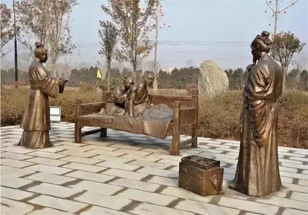 漢文帝劉恒,漢高祖第三子,為薄太后所生。高后八年(前180)即帝位。他以仁孝之名,聞于天下,侍奉母親從不懈怠。母親臥病三年,他常常目不交睫,衣不解帶;母親所服的湯藥,他親口嘗過后才放心讓母親服用。他在位24年,重德治,興禮儀,注意發(fā)展農(nóng)業(yè),使西漢社會穩(wěn)定,人丁興旺,經(jīng)濟(jì)得到恢復(fù)和發(fā)展,他與漢景帝的統(tǒng)治時期被譽(yù)為“文景之治”。