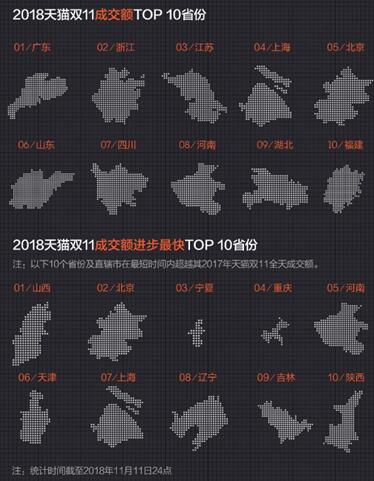 原標題:雙十一各省市成交額排行榜:廣東居首 山西“進步最快”