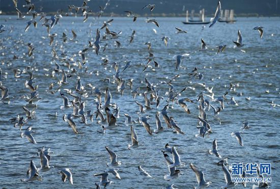 近日,云南省昆明市陽(yáng)光明媚、氣候宜人,不少市民和游客來(lái)到滇池大壩、大觀公園等地,觀賞前來(lái)越冬的紅嘴鷗。新華社記者 藺以光 攝