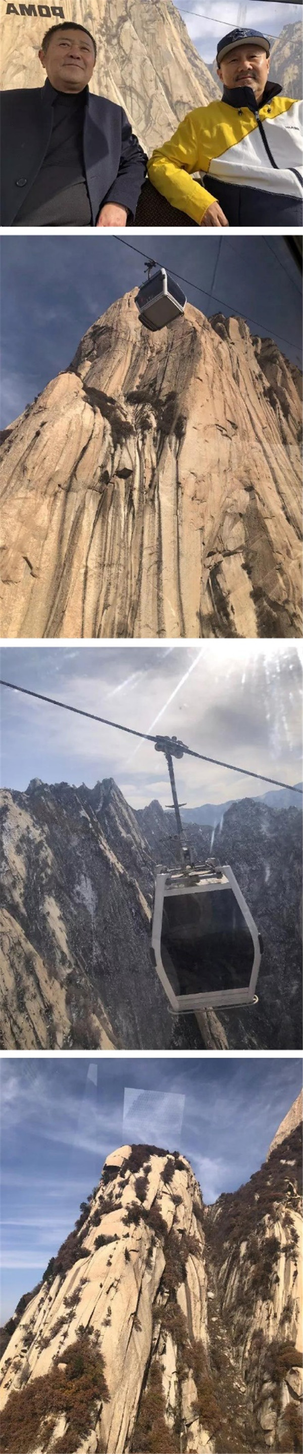 在索道上,騰格爾老師和友人開心的合影,對(duì)華山的奇險(xiǎn)也是感到驚嘆!