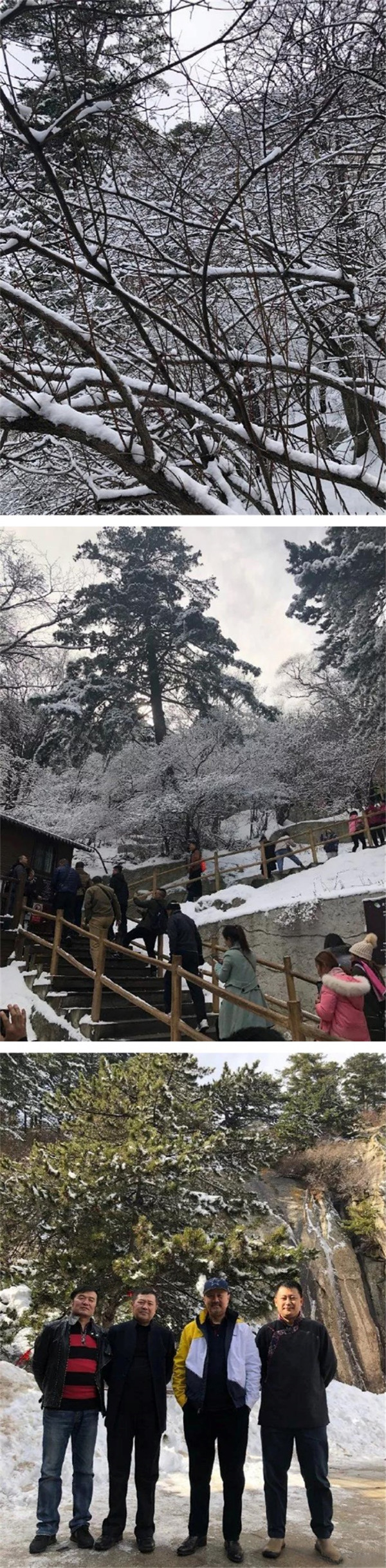此時(shí)的華山正是雪季,華山的雪景不僅是銀白的世界,而是猶如千姿百態(tài)的雪雕。雪霽,便有“林海玉樹”、“雪堆玉石”、“云中雪龍”、“巖崖雪屋”、“梨花飛揚(yáng)”、“天女散花”、“紅帶玉墜”等各具形態(tài)的奇特景觀。置身在雪的境界,神清氣爽,洗心革面,冰清玉潔,忘卻凡塵。