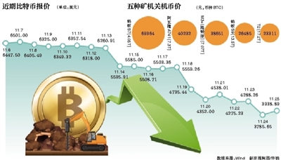 進(jìn)入2018年,比特幣價(jià)格一直處于震蕩下行之中。近兩周下跌趨勢(shì)愈加明顯,Wind數(shù)據(jù)顯示,繼11月14日比特幣報(bào)價(jià)跌破6000美元后,19日跌破5000美元,24日跌破4000美元。