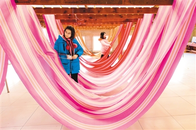 2018年以來,河北省衡水市冀州區(qū)依托當(dāng)?shù)氐氖〖壏沁z田園棉手織粗布技藝資源,采取“非遺+扶貧”的模式,通過非遺傳承人開展技能培訓(xùn)、老師傅傳幫帶等,讓村民在傳承非遺文化的同時(shí)學(xué)習(xí)傳統(tǒng)技藝,助力脫貧致富。圖為12月25日,衡水市冀州區(qū)一家老粗布生產(chǎn)企業(yè)的工人在檢測布料干濕度。