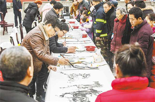 昨日,市文聯(lián)系統(tǒng)的藝術(shù)家們?yōu)楫?dāng)?shù)鼐用癖硌萘?3個(gè)精彩紛呈的文藝節(jié)目。市文聯(lián)等還在現(xiàn)場(chǎng)組織了送春聯(lián)、送書(shū)畫(huà)、送“全家福”合照、送民俗剪紙等活動(dòng)。“作為一名文藝工作者,只有聽(tīng)取群眾呼聲、汲取群眾智慧,才能更好地用文藝為群眾服務(wù)。”市文聯(lián)副主席程聯(lián)群說(shuō)。(記者 趙迎昭)