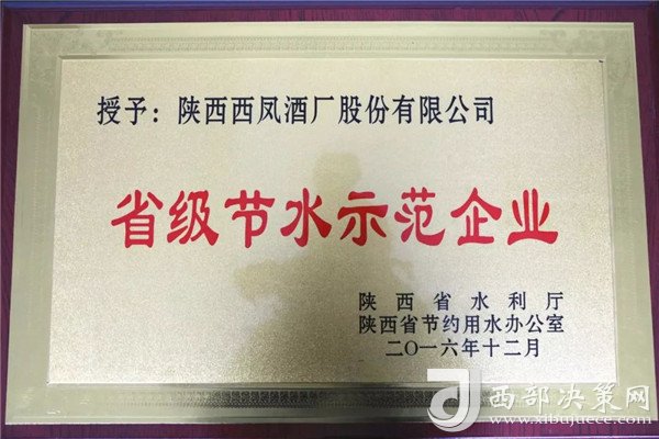 西鳳股份公司榮獲“省級節(jié)水示范企業(yè)”稱號
