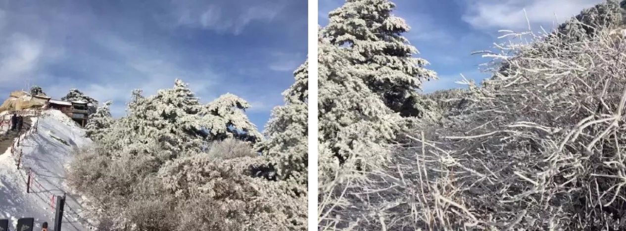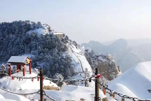 銀裝素裹的華山格外妖嬈,難得一見的華山雪景——美麗的霧凇給樹木、巖石、屋舍都披上一層晶瑩的薄衣,尤其在大雪覆蓋后,山景變成一幅曼妙的白色圖畫,峰上的樹木和古藤被透明的冰層包裹,極富魅力。