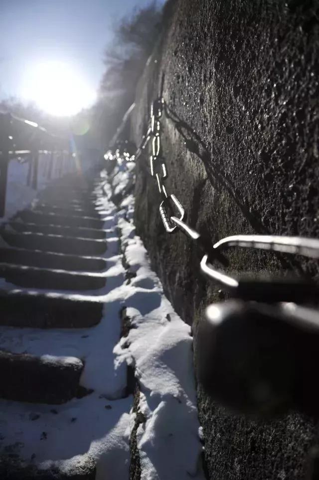 冬天的華山更是勇敢者的天堂,大雪過后,登上奇險(xiǎn)華山,看白雪覆蓋華山的山脊,看云霧在自己腳下流動(dòng),還有什么比這更讓人興奮的呢。