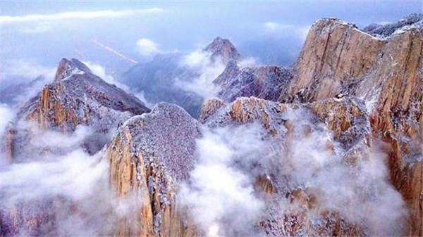 一場(chǎng)大雪將西岳華山變成白雪皚皚的世界,白雪與蒼翠的華山奇松、靈動(dòng)的云海交相輝映,如夢(mèng)如幻;滿山遍野玉樹(shù)瓊花,樹(shù)枝上通體的霧凇晶瑩剔透,繪就冬日畫(huà)境,美不勝收,游人如置身人間仙境。
