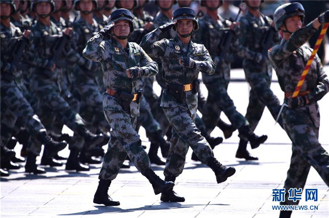 2015年9月3日,中國人民抗日戰(zhàn)爭暨世界反法西斯戰(zhàn)爭勝利70周年紀念大會在北京隆重舉行。這是徒步方隊通過天安門廣場。新華社記者龐興雷攝