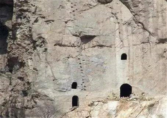 白雀寺北窟位于華陰市五方鄉(xiāng)仙峪村南秦嶺北支華山山脈。該石窟東隔仙峪與華山西峰相望,高出峪道約300米。洞窟開鑿于山體的花崗巖質(zhì)壁面上,存有洞窟三眼。石窟中的原彩塑已無存,洞頂上刻有的圖案保存較好,專家根據(jù)建造特征分析,三眼石窟可能始鑿于唐代。