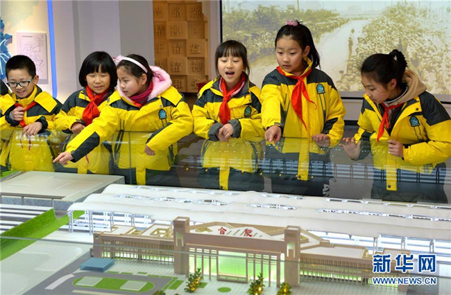 2月17日,合肥市西園新村小學(xué)學(xué)生在合肥火車站陳列室參觀。 當(dāng)日,安徽省合肥市西園新村小學(xué)學(xué)生來(lái)到合肥火車站陳列室,了解春運(yùn)故事,感受鐵路發(fā)展。 新華社發(fā)(黃博涵攝)
