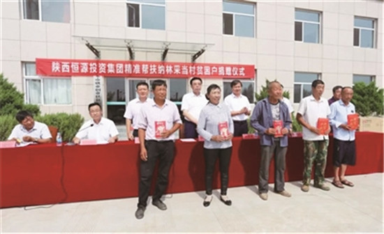 恒源集團(tuán)精準(zhǔn)幫扶納林采當(dāng)村貧困戶捐贈儀式現(xiàn)場