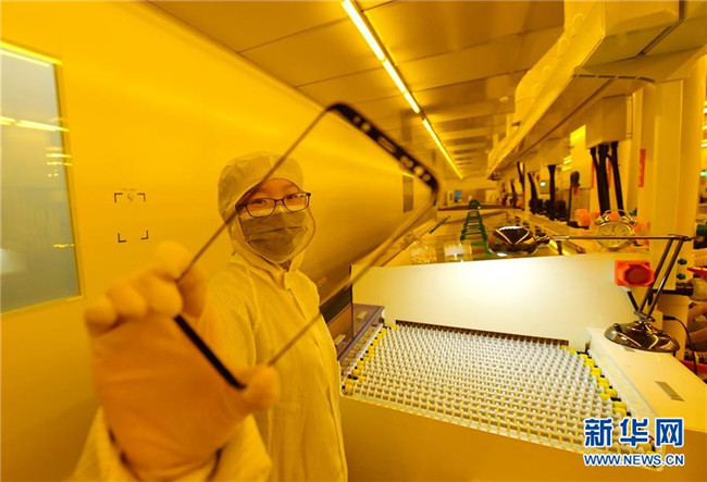 河北省遷安市一家手機3D玻璃蓋板生產(chǎn)企業(yè)的工人在生產(chǎn)車間工作(2018年12月24日攝)。新華社記者 楊世堯 攝