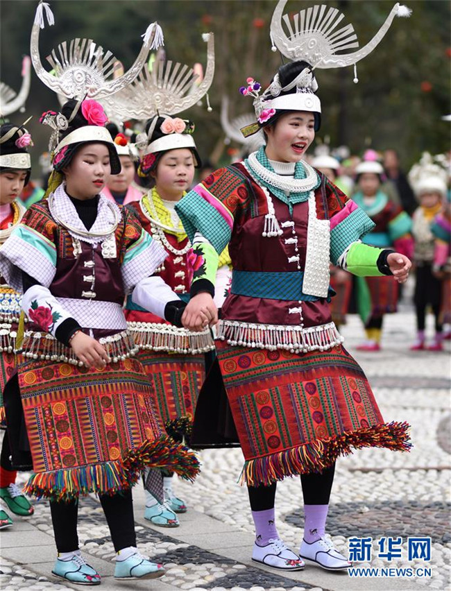 3月16日,在丹寨縣南皋鄉(xiāng)清江村,身著節(jié)日盛裝的苗族姑娘在跳木鼓舞。 當(dāng)日,貴州省黔東南苗族侗族自治州丹寨縣南皋鄉(xiāng)清江村清江村舉行翻鼓節(jié)。翻鼓節(jié)是當(dāng)?shù)孛缱宕迕裼哟焊絹淼拿袼坠?jié)日,至今已有近600年歷史,每年農(nóng)歷二月舉行。 新華社記者 楊文斌 攝