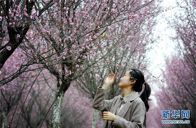 3月19日,游人在陜西勉縣新街子鎮(zhèn)踏春賞花。近日,陜西省漢中市勉縣新街子鎮(zhèn)數(shù)十畝美人梅開(kāi)放,吸引游人前來(lái)踏春賞花。 新華社記者 劉瀟 攝