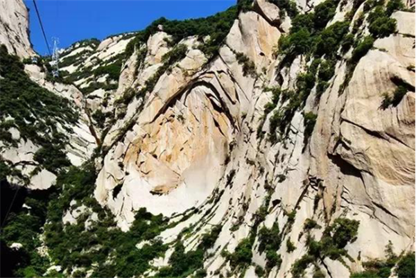 古人云:“山無石不奇,無純石不大奇”。華山奇石當屬“大奇”,雄奇瑰麗,風姿獨具,能令天下人“一見換神骨”。唐詩人孟郊《游華山云臺觀》詩贊華山是“華岳獨靈異,草木恒新鮮。山盡五色石,水無一色泉”。華山的主體是由一塊純粹完整的巨型花崗巖構(gòu)成,呈柱體狀,巍然屹立,四方如削,峭陡挺拔,高聳云天。正如朱德詩中所說“華山直挺黃河邊,雄視東方函谷關(guān)”,大石大奇的壯觀氣勢可謂舉世獨具。其次,它的三座主峰合攏相擁而形成的蓮花狀山勢,也是“石之大奇”的展現(xiàn)。前人說三峰“一石以為莖,二峰以為葉”,形象地狀摹出了華山三峰形似蓮花的狀態(tài)和高表云天,怒放群山的博大與宏偉。另外,由于地殼的裂變斷震,許多似人似物的象形奇石散落于景區(qū)各處,形成了獨具特色,饒有興趣的奇石景觀,而且這些奇石大多都伴隨著一個神奇而美麗的傳說故事,更增添了這類景觀的生動趣味和神秘色彩。可以說,華山之石,無石不奇。