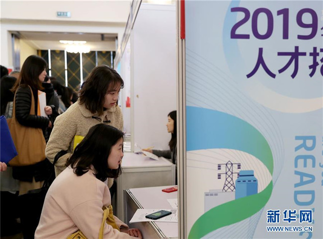 3月24日,求職者在招聘會(huì)上了解崗位信息。當(dāng)日,由上海、江蘇、浙江、安徽聯(lián)合舉辦的“長三角地區(qū)春季人才交流洽談會(huì)暨2019屆高校畢業(yè)生擇業(yè)招聘會(huì)”在上海展覽中心舉行。 新華社記者 劉穎 攝