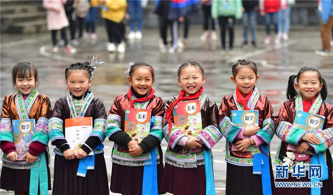 進入二十一世紀,隨著我國義務教育的普及和農村義務教育學生營養(yǎng)改善計劃等一系列教育惠民政策的落實,當地黨委政府大力改善學校辦學條件,完善教育精準資助體系,保障學生特別是適齡女童能夠充分接受良好的教育。目前,適齡女童的入學率已經超過99%,“狗不耕田,女不讀書”的傳統觀念得到徹底改變,越來越多的苗山適齡女童得以通過接受良好的教育實現自己的夢想。新華社記者 黃孝邦 攝
