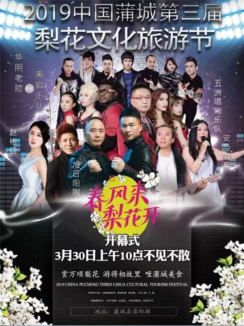 內(nèi)容:“春風(fēng)來 梨花開”2019中國蒲城梨花文化旅游節(jié)開幕式盛大文藝演出與您相約,陣容強(qiáng)大、星光熠熠唱響蒲城大地。
