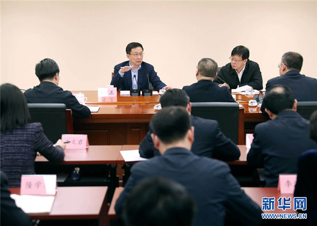 3月26日,中共中央政治局常委、國(guó)務(wù)院副總理韓正到國(guó)家醫(yī)療保障局調(diào)研并主持召開座談會(huì)。 新華社記者劉衛(wèi)兵攝