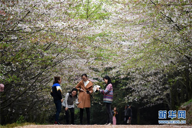 仲春時(shí)節(jié),位于貴州省貴安新區(qū)櫻花觀光園內(nèi)的櫻花競相綻放,如白雪般的櫻花海吸引眾多游客前來賞花觀光。