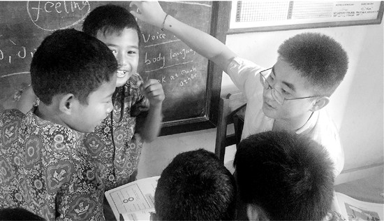 上圖:姚熙遠(yuǎn)(右一)在印度做志愿者。
