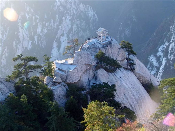 華山古稱“西岳”,是我國(guó)著名的五岳之一,南接秦嶺,北瞰黃渭,扼守著大西北進(jìn)出中原的門(mén)戶。華山由一塊完整碩大的花崗巖體構(gòu)成,有東、西、南、北、中五峰,主峰有南峰“落雁”、東峰“朝陽(yáng)”、西峰“蓮花”,三峰鼎峙。最高峰也是五岳最高峰—南峰“落雁”海拔2154.9米。