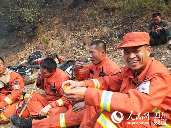 4月8日上午6時,鹽邊大隊指戰(zhàn)員奉命趕到東線山梁處置火情。下午兩點多,簡單吃了幾口干糧的指戰(zhàn)員暫時進行休整。
