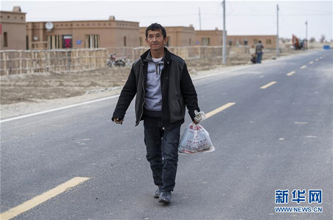 2016年,生態(tài)惡化與脫貧攻堅的雙重考慮下,于田縣政府將達(dá)里雅布依搬遷提上了議程。2017年,政府投入資金修建了深入沙漠的90公里柏油路,并為貧困戶建設(shè)了安置房。