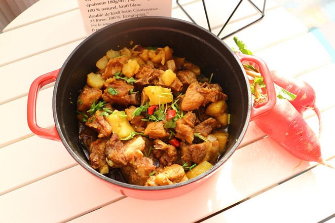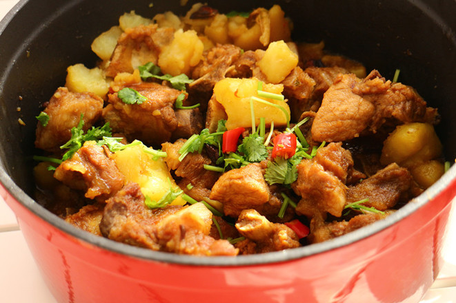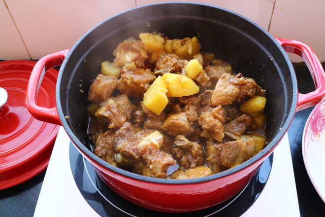 9.最后小火收汁,看到排骨燉爛,土豆熟透即可