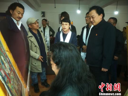 圖為調(diào)研組一行參觀西藏雪堆白職業(yè)技能培訓(xùn)學(xué)校,了解唐卡繪畫(huà)技藝。 西藏自治區(qū)文化廳供圖 攝