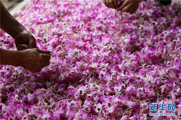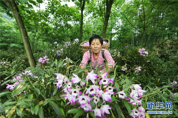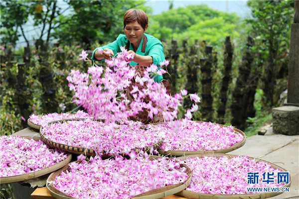 近日,貴州省赤水市的金釵石斛花陸續(xù)進入盛花期,當地農民忙著采摘鮮花,供應各地市場。金釵石斛是一種名貴中藥材,有“仙草”之稱。近年來,赤水市多個鄉(xiāng)鎮(zhèn)積極推進農業(yè)與鄉(xiāng)村旅游等產業(yè)融合,采取“合作社+支部+農戶”模式,鼓勵農民種植金釵石斛,助力脫貧攻堅和鄉(xiāng)村振興。新華社發(fā)(王長育 攝)