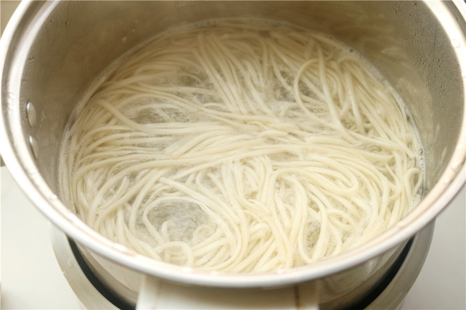 5.煮好的掛面撈出來(lái)過(guò)一下涼開(kāi)水,這樣拌起來(lái)更清爽。