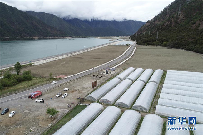 這是位于川藏公路旁的久巴村及其周邊草莓種植大棚(5月14日,無人機拍攝)。 新華社記者 李鑫 攝