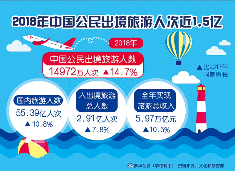 近年來,隨著我國經(jīng)濟(jì)社會發(fā)展,人民生活水平得到顯著提高,國民旅游休閑生活更加精彩,出境旅游成為新的時尚。圖為2018年中國公民出境旅游相關(guān)數(shù)據(jù)。 新華社發(fā) 李棟/制圖