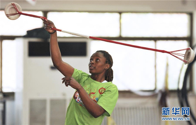 5月20日,在吳橋雜技藝術學校,留學生練習雜技。新華社發(fā)(苑立偉 攝)