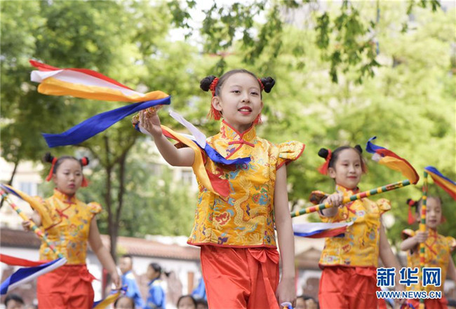 當(dāng)日,內(nèi)蒙古呼和浩特市新城區(qū)滿族小學(xué)舉辦“繽紛民族情 炫彩花棍舞”主題活動,學(xué)生們身著艷麗的滿族服飾,跳起優(yōu)美飄逸的滿族花棍舞,在濃郁的民族文化氛圍中迎接即將到來的“六一”兒童節(jié)。 新華社發(fā)(王正 攝)