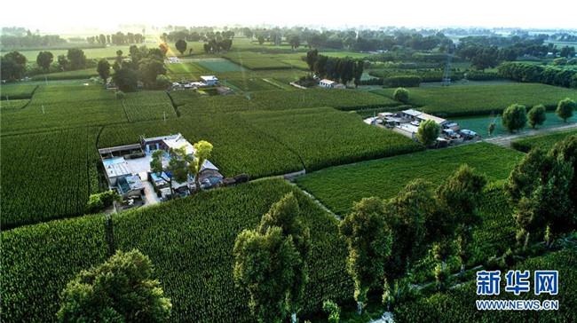 陜西榆林市靖邊縣東坑鎮(zhèn)新建村綠色包圍中的農(nóng)家小院(2018年7月31日無人機拍攝)。陜西省開展的天然林保護(hù)工程和全面治理荒沙行動,極大改善了毛烏素的生態(tài)環(huán)境,也使沙漠南緣的陜西省榆林市實現(xiàn)從“沙進(jìn)人退”到“綠進(jìn)沙退”的轉(zhuǎn)變。 新華社記者 陶明 攝
