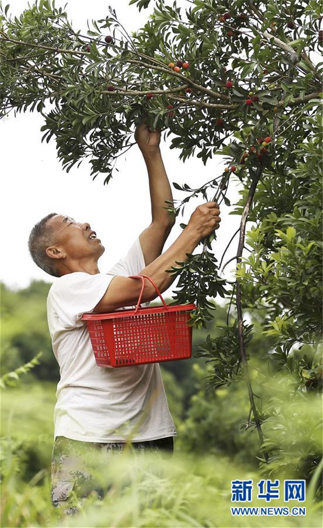 6月15日,在丹寨縣揚武鎮(zhèn)老冬村楊梅種植園,果農(nóng)在采摘楊梅。新華社發(fā)(黃曉海 攝)