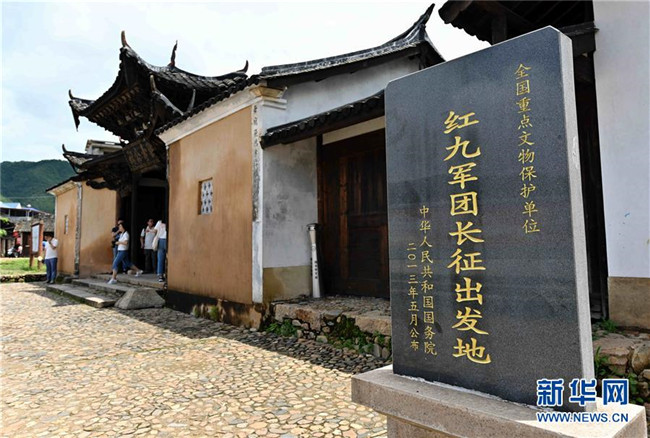 中復(fù)村觀壽公祠前,“紅九軍團(tuán)長(zhǎng)征二萬(wàn)五千里零公里處”石碑靜立無(wú)聲。