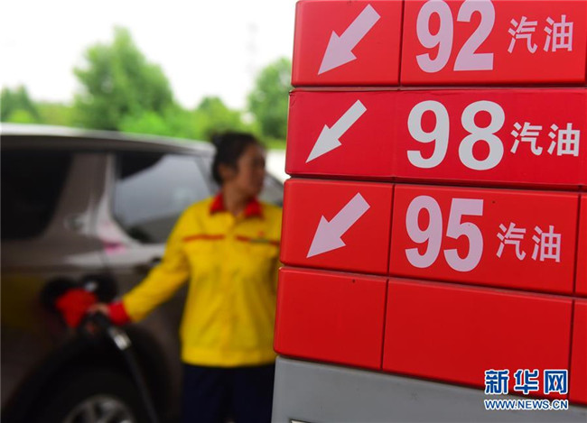 6月25日,江蘇省無(wú)錫市一加油站工作人員在給車輛加油。新華社發(fā)(還月亮 攝)