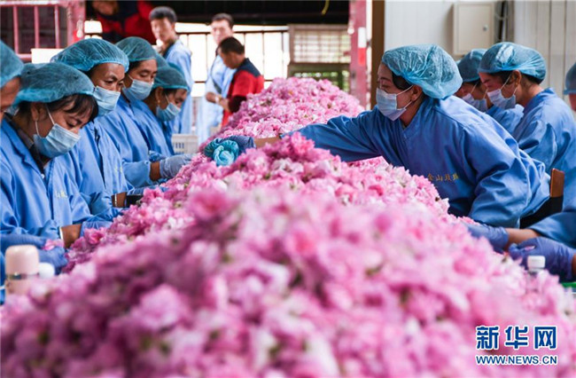 近年來,四川省阿壩藏族羌族自治州小金縣大力發(fā)展玫瑰種植加工產業(yè),形成種植基地+企業(yè)+合作社+農戶的發(fā)展模式,生產食用玫瑰、玫瑰精油、玫瑰酒等多種玫瑰產品,助推該地區(qū)脫貧致富。